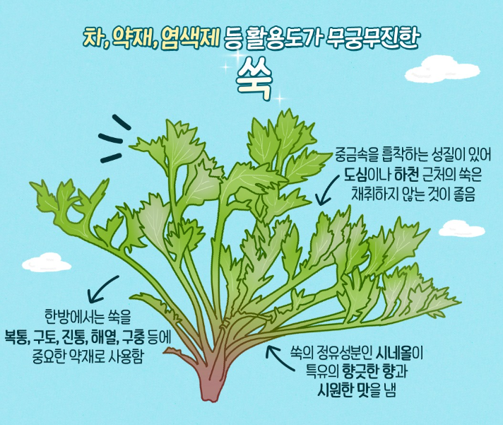 - 쑥은 떡, 차, 술 등 다양한 식품에 활용됩니다.